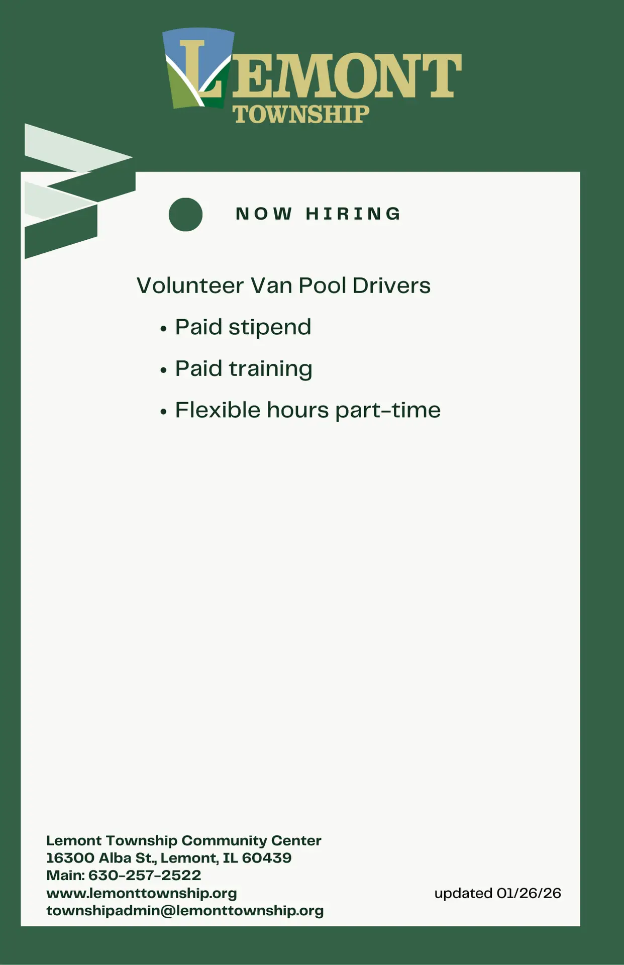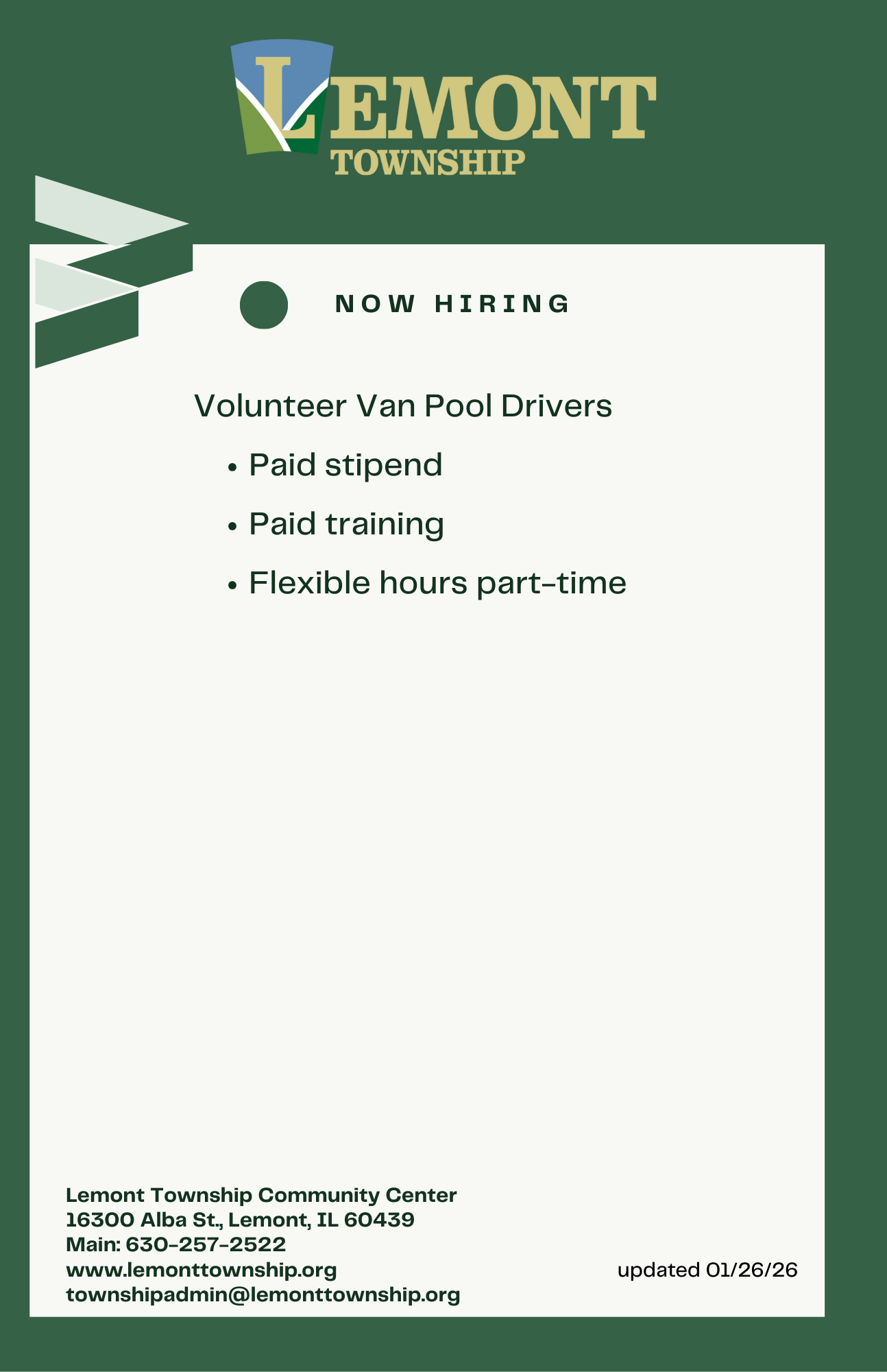 We Are Always Looking For Volunteer Vanpool Drivers, M-F 8:00 am – 5:00 pm.
